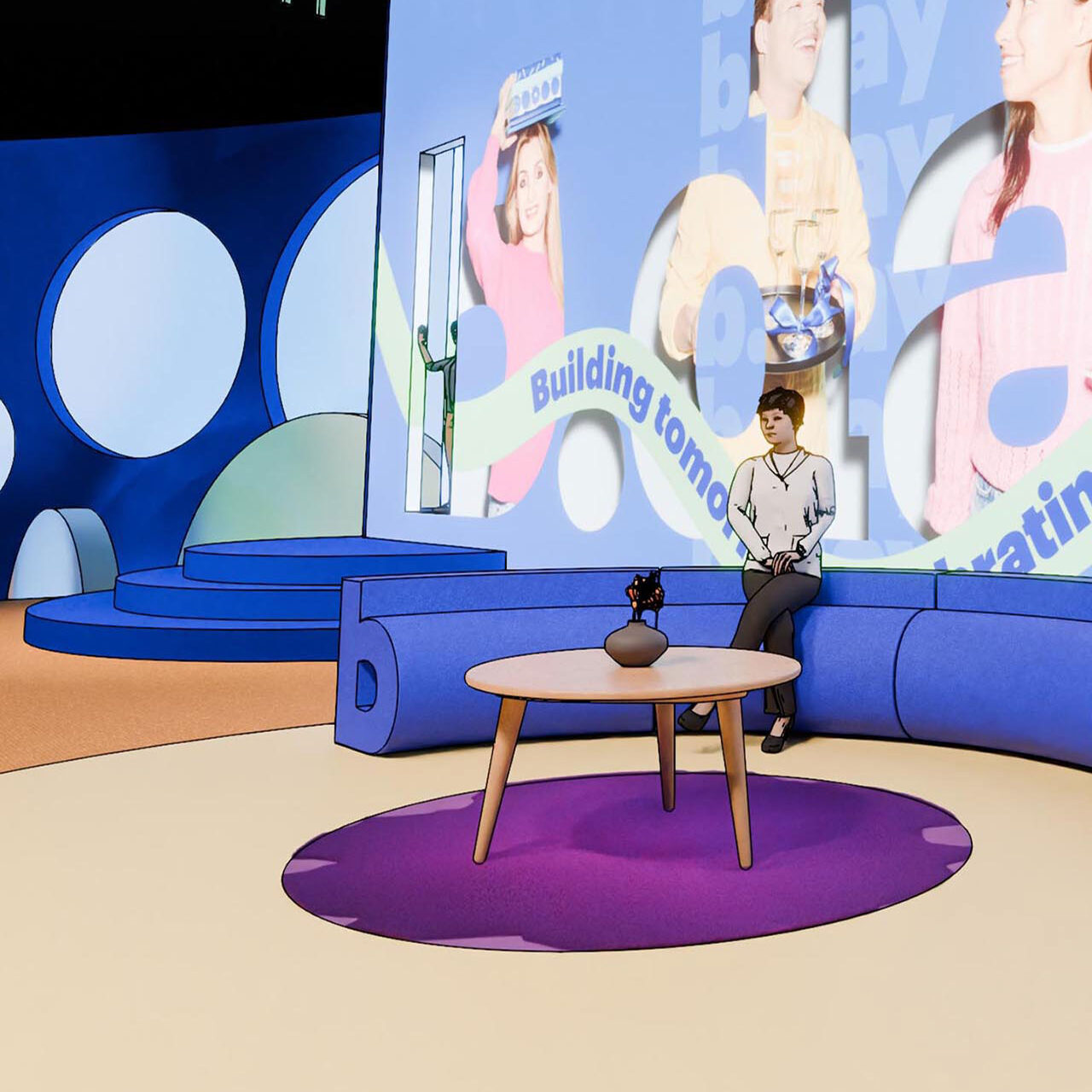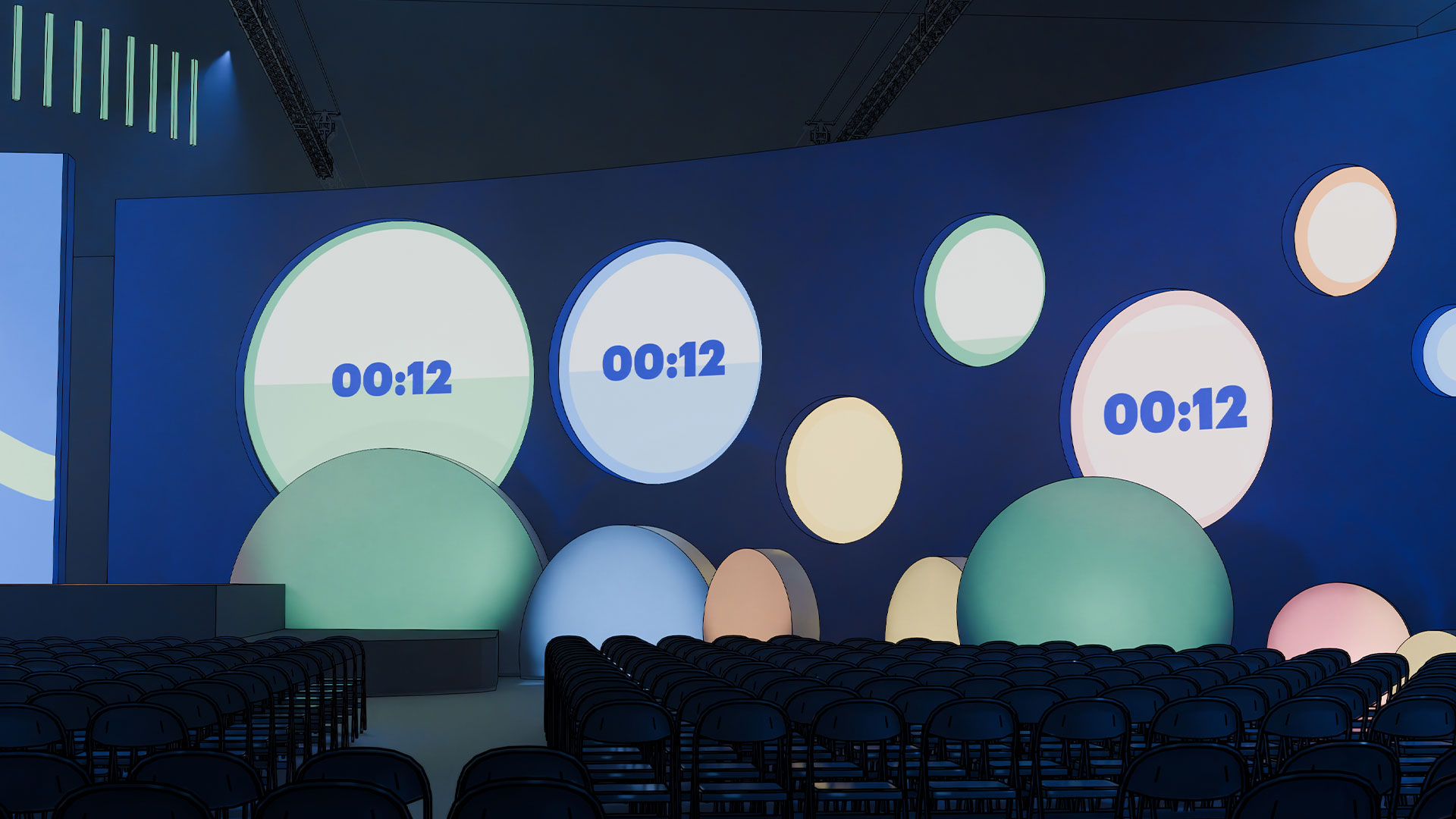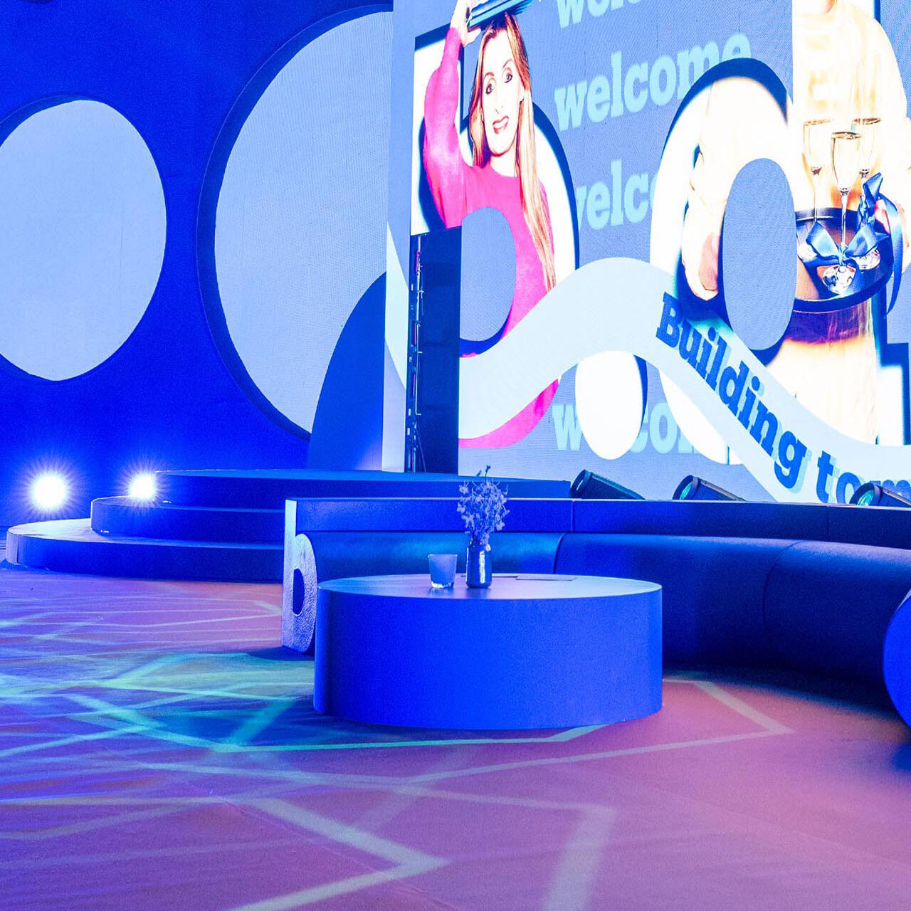 With the stage design ready, it was time to create cool on-screen visuals. Together with Supermassive we created screen visuals that extended the set into a 3D illusion: by figuring out the angle and distance of the viewer, we made the screens feel like a natural extension of the space. Besides that I advised Bol's leadership to move away from boring Powerpoints and using the dynamic stage setup to tell a more engaging story while keeping the audiance hooked without overwhelming them (unfortunately I cannot share any content from those presentations).