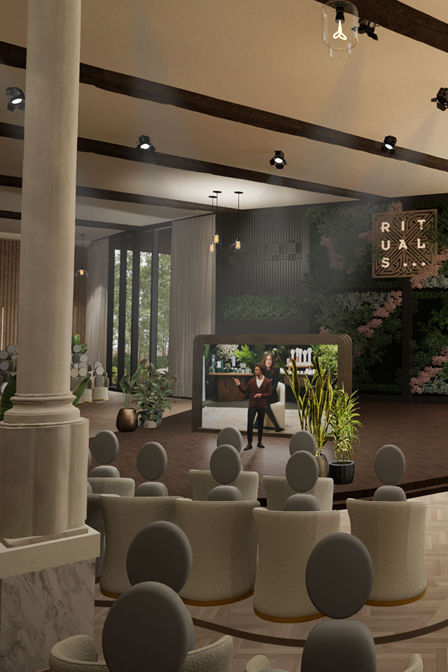 For RITUALS' first ever Virtual Live Event, the goal was to deliver a seamless live experience for 1.600+ Store Managers worldwide. We created a virtual studio where attendees could log in, grab a virtual set, and interact with the host through the chat and emoji's which were visible in the digital space. This immersive approach made the message more engaging and memorable. I designed the event branding, featuring the iconic RITUALS cherry blossom tree as its centerpiece, and directed the environment art and cinematography of the virtual studio.