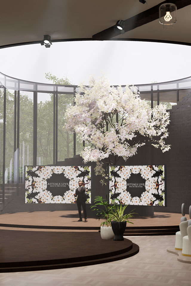The studio was built in Unreal Engine, allowing us to place a live host in front of a greenscreen into the 3D enviroment. With a motorized dolly cam we created smooth crane and tracking shots, making the space with the host feel real. The environment itself reflected a RITUALS store, with the cherry blossom tree in full bloom year-round. To keep the experience intimate, we limited the virtual audience to 200 seats, placing viewers into the space when they asked a question. This created the illusion that everyone was present without overcrowing. As DoP, I directed the live cinematography and camera switching, ensuring a polished final result.