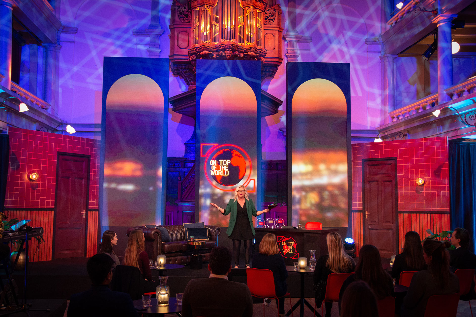 Bringing the late-night talk show concept to life started with sketches and moodboards that blended the Top Employer branding with a familiar late night show setting. The goal was to create a premium yet inviting setting that felt both professional and entertaining.